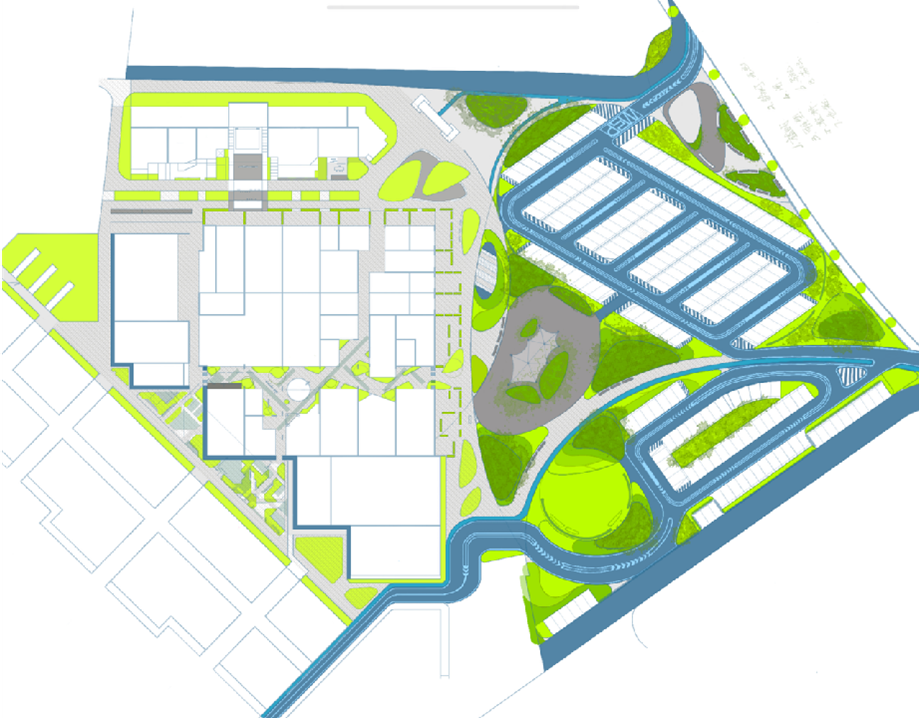 以清新的绿色为主色调为园区带来生机与活力,搭配银灰色植物、蓝紫色花卉丰富色彩层次。