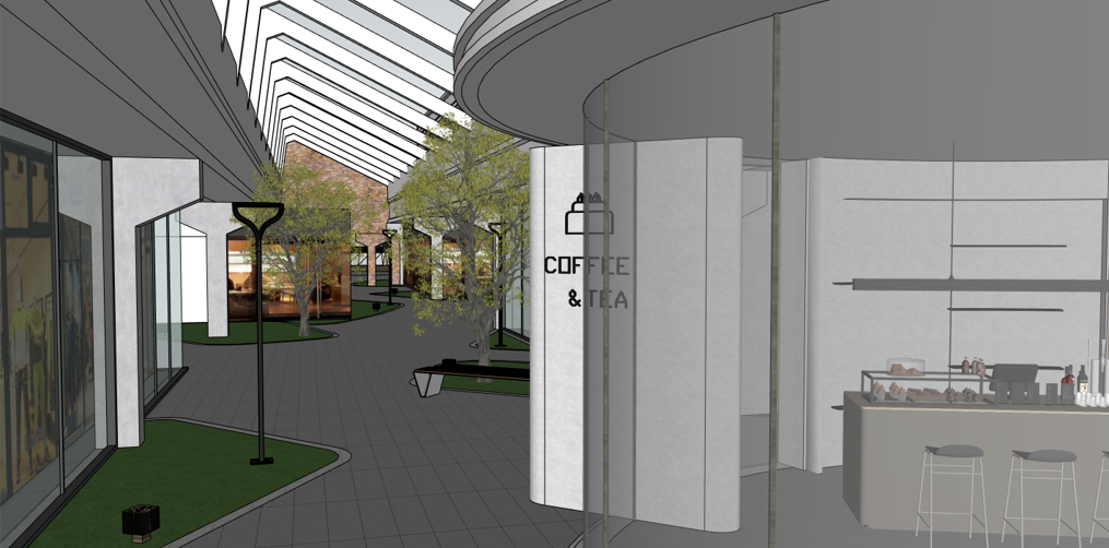 原贰号楼每个单元平米数较大,缺乏可逛性。经过对目前空置单元的重新规划,外围单元以餐饮、休闲餐饮、精酿等为主,有可向外延展的外摆空间;内部增加零售、快闪、展览等业态,并增加景观节点,环境和内容相呼应。